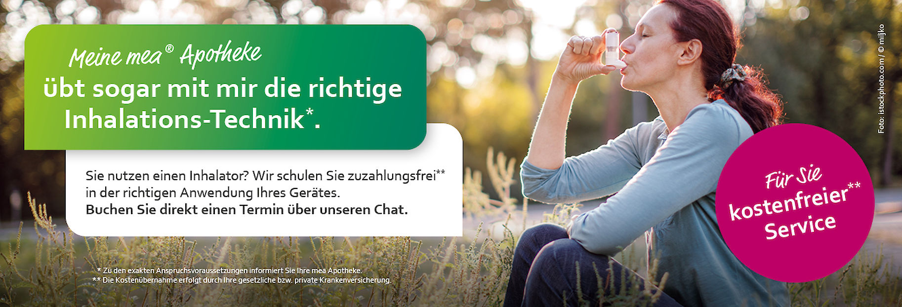 Erwachsene und Kinder ab 6 Jahren erhalten mit dieser Dienstleistung das Angebot, bei Neuverordnung von inhalativen Arzneimitteln bzw. bei jedem Device-Wechsel ihre Inhalationstechnik nach einem standardisierten Prozess in der Apotheke zu üben. Sie haben zudem Anspruch, dies alle 12 Monate zu wiederholen, wenn sie in den letzten 12 Monaten keine Schulung in einer Arztpraxis oder anderen Apotheke erhalten haben und nicht im DMP Asthma/COPD eingeschrieben sind. Ziel ist, die Qualität der Arzneimittelanwendung von Inhalativa zu verbessern und die Therapietreue sowie die Effektivität der verordneten Therapie zu optimieren. In der Apotheke erfolgt die Einweisung in die korrekte Inhalationstechnik unter Verwendung eines „Dummys“ bzw. Placebos des konkret abzugebenen Devices (d. h. gemäß ärztlicher Verordnung bzw. nach Rabattvertrag). Während der Demonstration durch die/den Patient*in wird die Anwendung überprüft und dokumentiert. Im Anschluss werden Anwendungsfehler besprochen und die korrekte Anwendung erneut geübt.